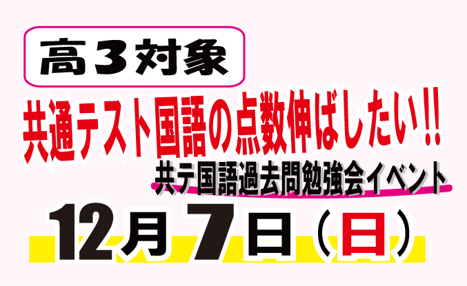 冬期講習のお申込、大好評受付中! 受験生は冬期講習で最後の追い込みを! その他の学年の生徒は、この先の受験への礎を築こう! 小学3年生~中学3年生の模擬試験の申込も同時受付中です! 模試のみの受付もできますので、ご希望の方は、お電話、LINE...