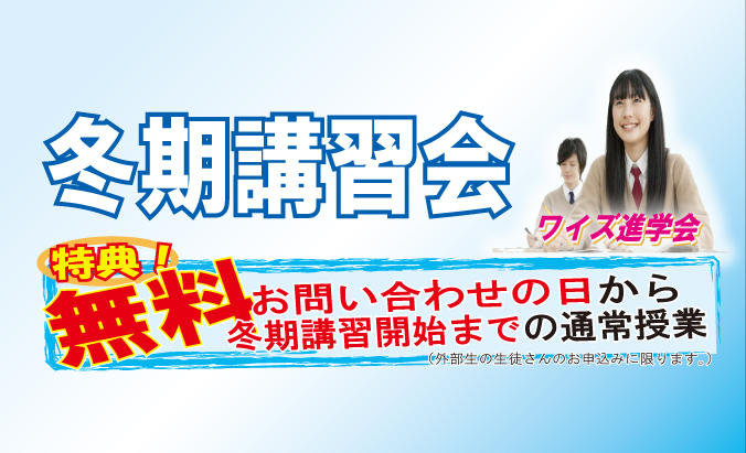 冬期講習の受付を開始いたしました! お申込みの方は、冬期講習までの通授授業に無料でご参加いただけます (ワイズ生以外の方に限らせていただいております。ご了承ください。) お問合せ用LINE、またはメールフォームからお問合せ下さい。 <日出校> 小... -